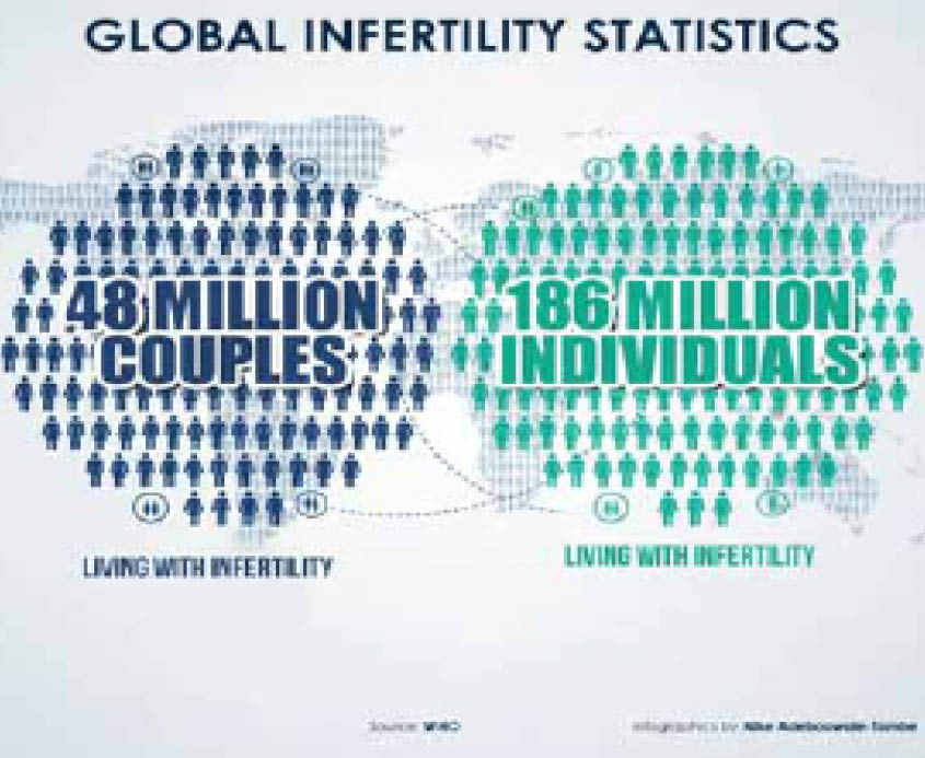 Data from the WHO estimates that 48 million couples and 186 million individuals are living with infertility globally. This report, based on data from 1990 to 2021, estimated that approximately one in six people globally have experienced infertility at some stage in their lives, representing around 17.5 per cent of the adult population.
