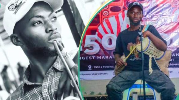 A third-year Computer Science Student ,Olaniyi Israel Adewale Eniola, from Federal University, Oye Ekiti, has broken the Guinness World Record for the longest drumming...