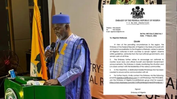 Featured Nigerian Embassy in Kuwait Issues Safety Advisory to Citizens Amid Regional Tensions The Embassy of the Federal Republic of Nigeria in the State of Kuwait has issued a safety advisory to Nigerian nationals residing in Kuwait... KTNN staff deuxMarch 2, 2026